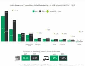 The health, beauty and personal care retail category will add US $305 billion in global sales between 2021 and 2026 (and just over 50% of that growth will come from ecommerce) – forecasts the market research and data analytics arm of Edge by Ascential