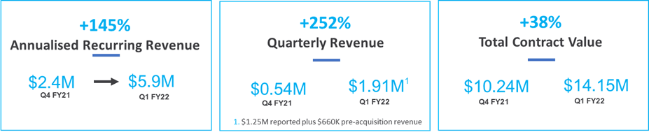 - Total Contract Value (TCV) up 38% on top of Q4 FY21’s exceptional 68% increase to $14.15M.